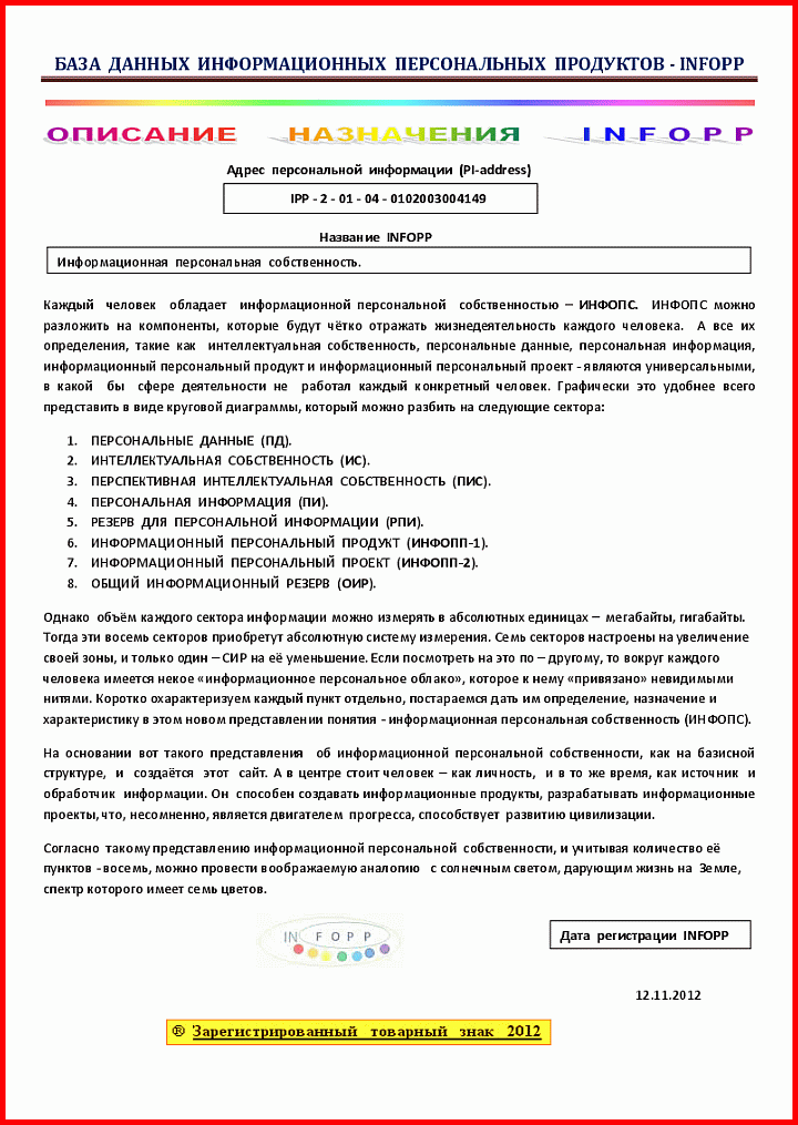 СВИДЕТЕЛЬСТВО О РЕГИСТРАЦИИ В БАЗЕ ДАННЫХ INFOPP